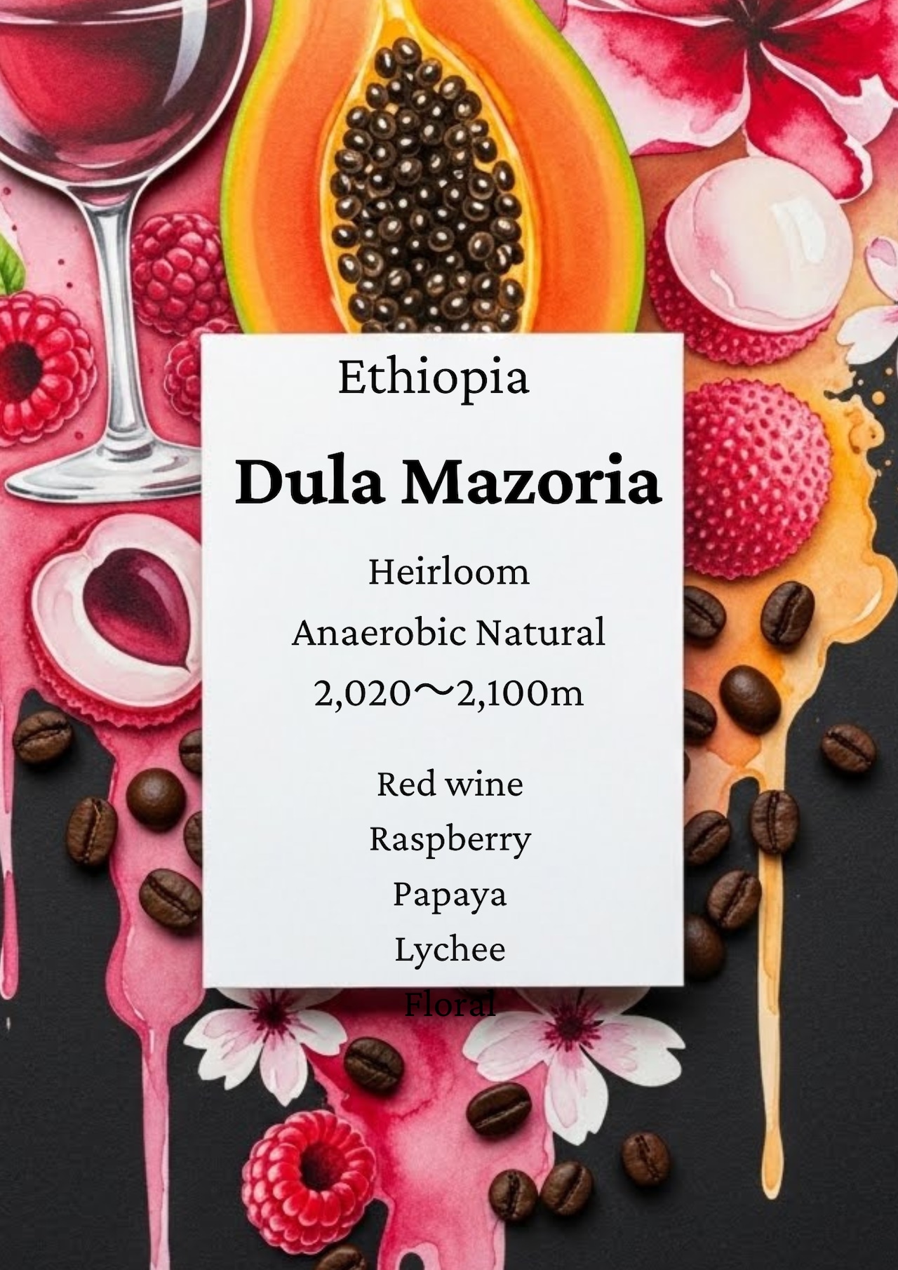 エチオピア産の豆は多様なサイズと種類が混在し、均一な焙煎が難しい特徴があります。アナエロビックナチュラルの場合、焙煎初期に豆の温度が急上昇しやすく、外側が焦げやすくなる傾向があります。焦げからくる"スモーキーさ"を出さないよう工夫をしました。