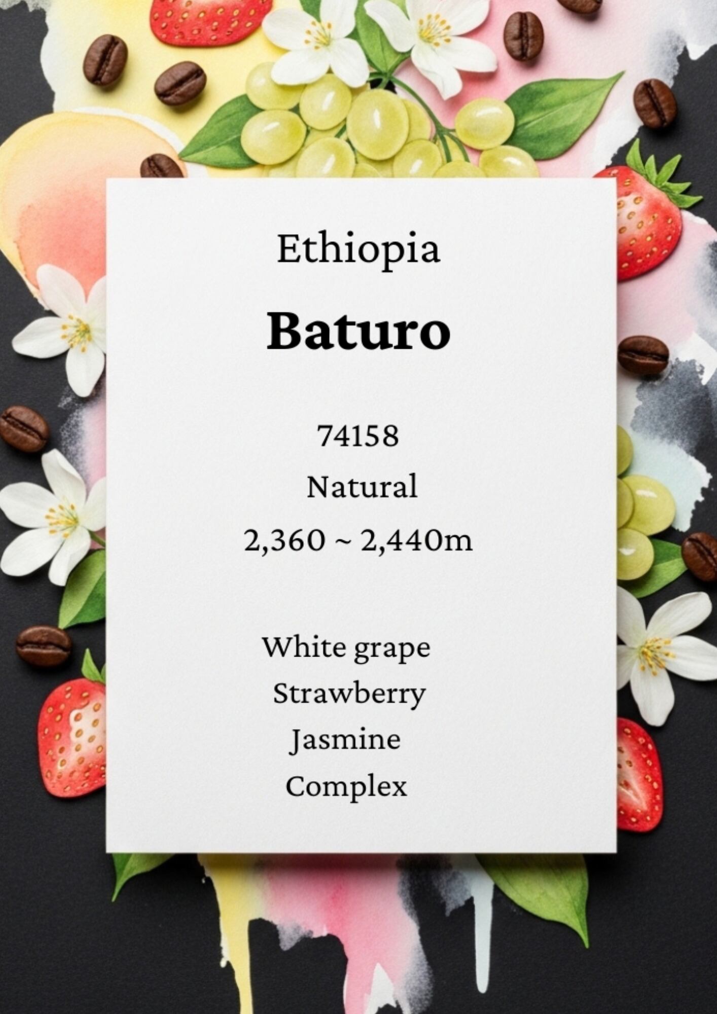 エチオピア産の豆は多様なサイズと種類が混在し、均一な焙煎が難しい特徴があります。ナチュラルの場合、焙煎初期に豆の温度が急上昇しやすく、外側が焦げやすくなる傾向があります。焦げからくる"スモーキーさ"を出さないよう工夫をしました。