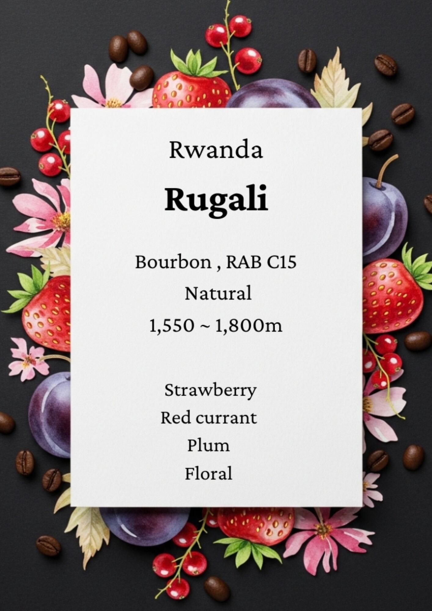 ルワンダのナチュラルらしい華やかさが特徴です。ストロベリーやレッドカラントの果実味やトロピカルなニュアンスがエキゾチックです。